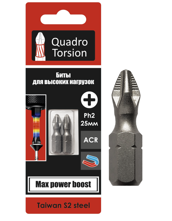 Ph2-25мм (25 шт./кор.) Бита 1/4" C6,3 "Quadro Torsion"