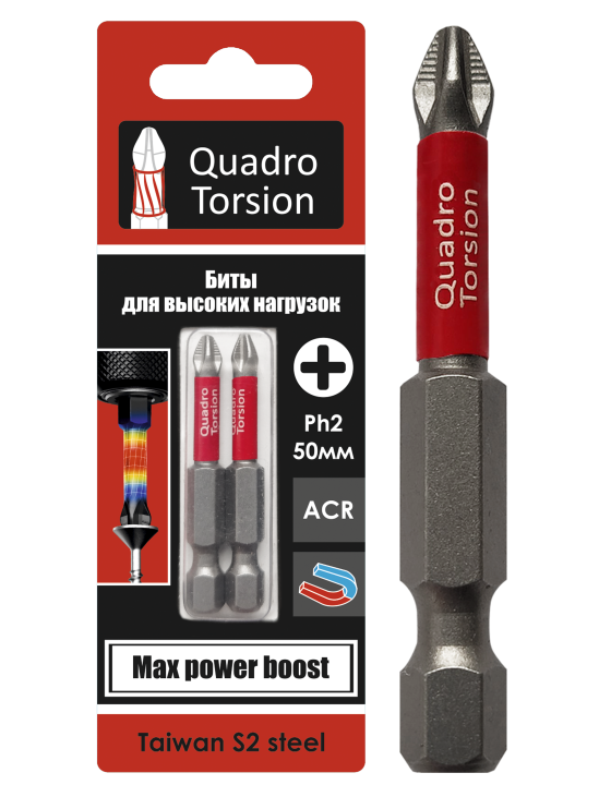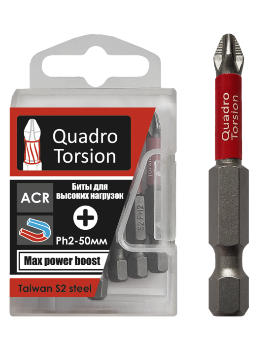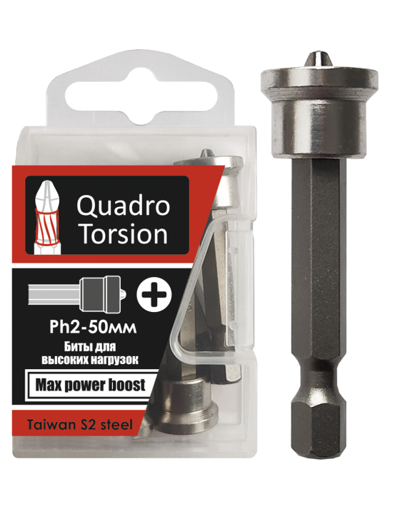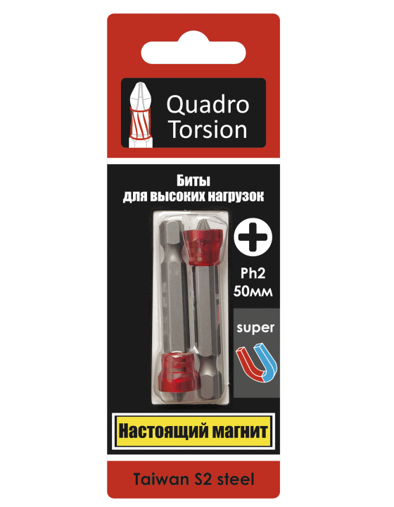 Ph2-50мм с магнитной насадкой (2 шт./карта) Биты 1/4" "Quadro Torsion"