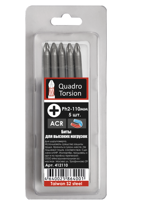 Ph2-110мм (5 шт./кор.) Бита 1/4" E6,3 "Quadro Torsion"