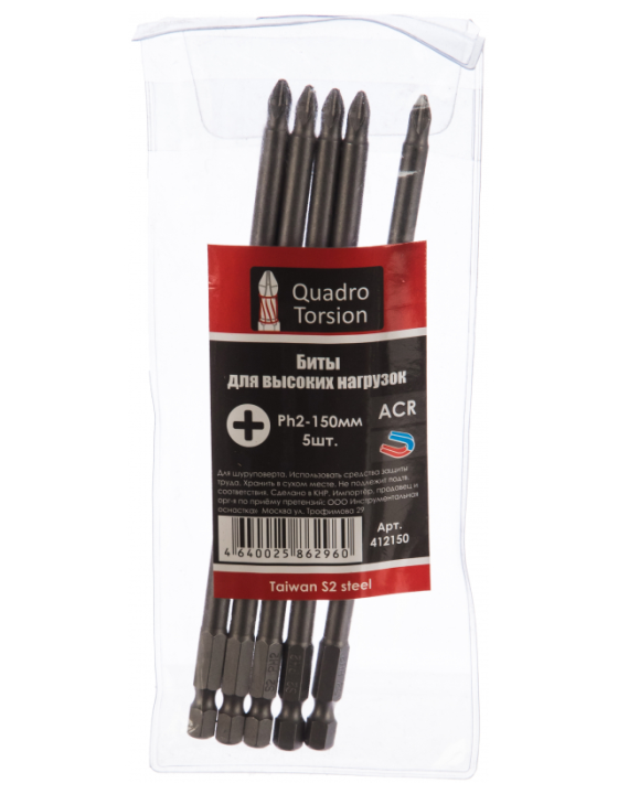 Ph2-150мм (5 шт./кор.) Бита 1/4" E6,3 "Quadro Torsion"