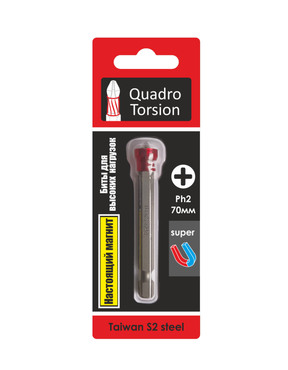 Ph2-70мм с магнитной насадкой (1 шт./карта) Биты 1/4" "Quadro Torsion"