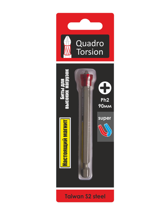 Ph2-90мм с магнитной насадкой (1 шт./карта) Биты 1/4" "Quadro Torsion"