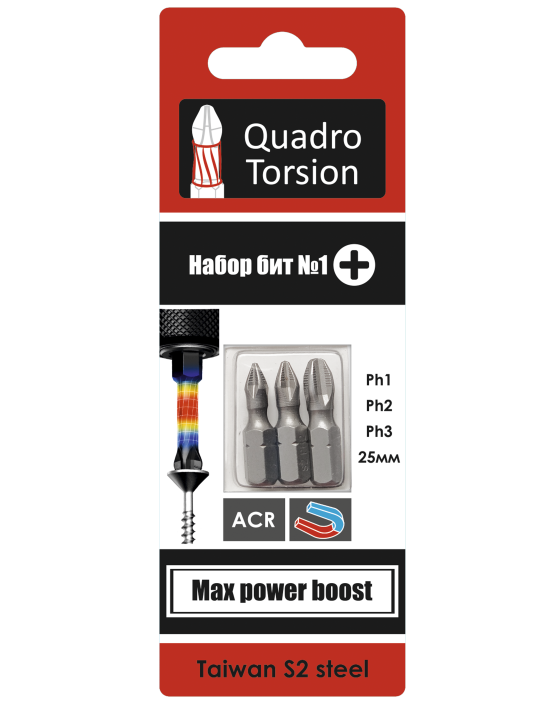 Набор бит №1 Ph1,2,3-25мм (3 шт./карта) "Quadro Torsion"
