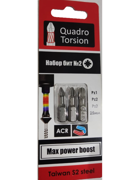 Набор бит №2 Pz1,2,3-25мм (3 шт./карта) "Quadro Torsion"