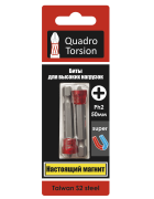 PZ2-50мм с магнитной насадкой (2 шт./карта) Биты 1/4" "Quadro Torsion"